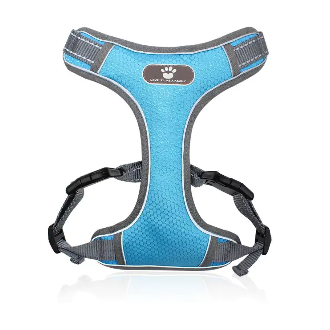 Este arnés reforzado para perros cuenta con cinta reflectante para mayor visibilidad y seguridad en cualquier condición de luz. Hecho de materiales duraderos, ofrece un ajuste seguro y cómodo Talle M, de 6 a 16 kg. Disponible en varios colores.