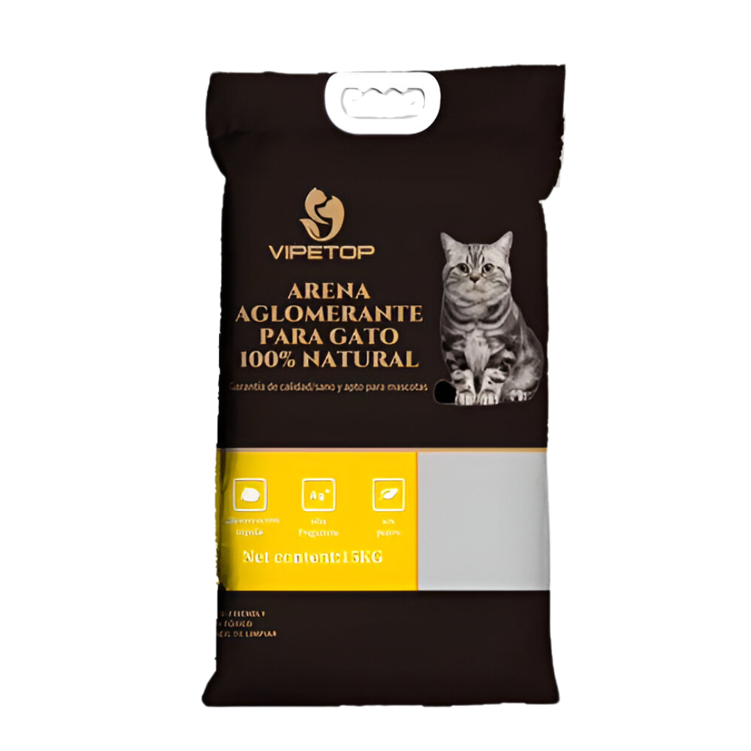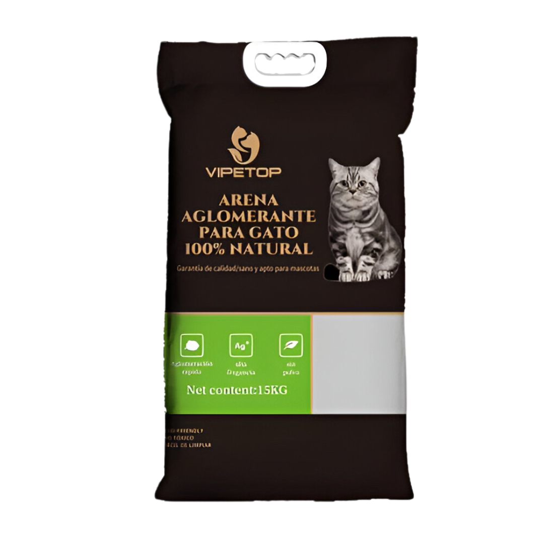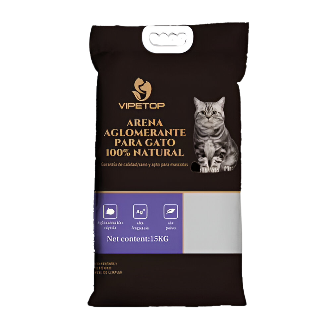 Vipetop presenta su arena sanitaria para gatos de bentonita aglomerante en un práctico paquete único de 15 kg, ideal para quienes buscan un mayor rendimiento en un solo paquete. Su fórmula aglomerante forma grumos compactos para facilitar la limpieza, mientras que los aromas de limón, lavanda y manzana mantienen el control de olores y el ambiente fresco. Además, el paquete viene con manija para un transporte cómodo y seguro, brindándote comodidad y conveniencia en cada uso. Perfecta para hogares con varios gatos o para quienes prefieren un formato económico y fácil de manejar.