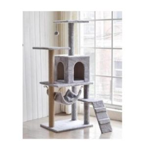RASCADOR DE MADERA CON RAMPA Y HAMACA