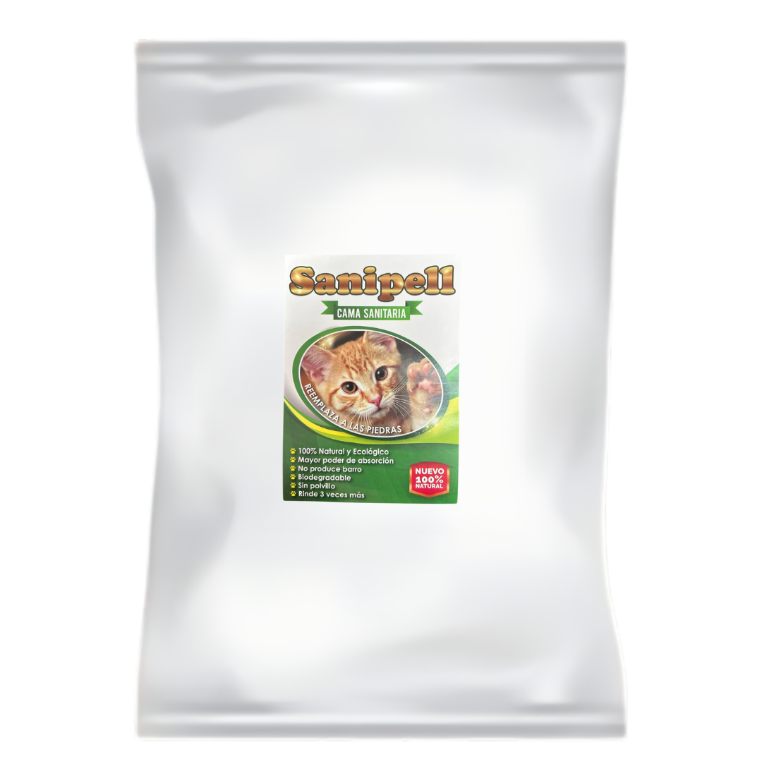 Mi Sanipell es un sanitario ecológico para gatos, fabricado con pellets de alta eficiencia. Su fórmula absorbente controla la humedad y los olores de manera eficaz, garantizando un entorno limpio y seco. Presentacion paquetes de 15kg.